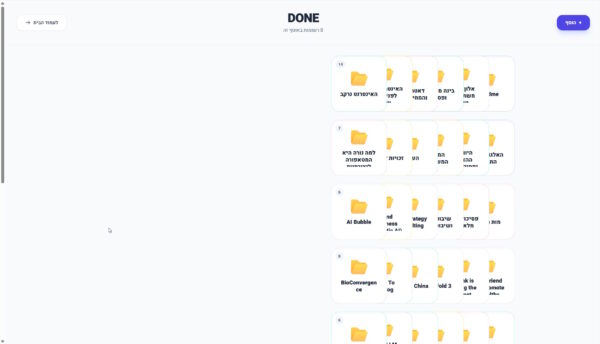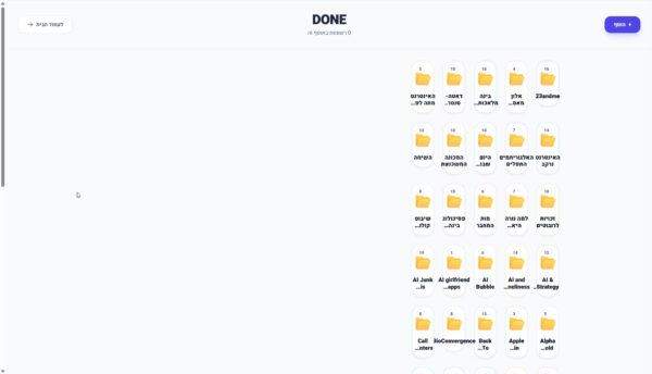 ג'מיני בנה אפליקציה מאפס, מכלום, יש בה 650 שורות קוד ב-HTML ועוד 170 שורות קוד בקובץ PHP. הוא אפשר לי להעלות קבצים בצמוד לכל קישור (נניח קובץ PDF), הוא פתר את בעיית התצוגה המקדימה, הוא אפשר לי להוסיף ציטוטים, למחוק אותם, להוסיף תיקיות, למחוק אותן, לייצר עץ של תתי-תיקיות, אבל את הבעיה הזו – לקחת שני טורים ולהפוך לשישה – הוא לא הצליח לפתור ולא משנה כמה הוא ניסה.